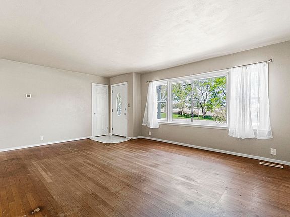 Introducing a charming and practical 2-bedroom, 1-bathroom house is ideal for those looking for a comfortable living space with convenient amenities. Spanning 923 square feet, this property boasts a well-appointed eat-in kitchen featuring modern stainless appliances, perfect for cooking and dining in a cozy setting. The home includes an attached one-car garage, providing not only vehicle security but additional storage options. In the basement, you'll find a convenient laundry area with a washer and dryer, enhancing the functionality of the home. One of the standout features of this property is its mature trees, which offer ample shade and contribute to a serene and picturesque outdoor environment. The full basement presents a wealth of potential for additional storage or can be transformed into additional living space, a home gym, or an entertainment area, depending on your needs. Situated in a peaceful location, this house combines the privacy and tranquility of a detached home with the practical benefits of modern living. Close to parks, schools and shopping. This property is now available for sale and awaits its new owners to start their next chapter.