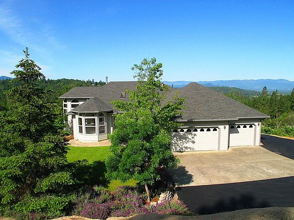 Spectacular Panoramic Views! So peaceful, private and rural with low county taxes, yet literally 3 minutes to town with District 7 schools. And don't miss the large, secluded, sunny meadow just to the right of the cul-de-sac below (see photos.) This is truly a unique and very special little corner of Southern Oregon. With a brand new roof and recent paint, this gorgeous, contemporary home with 3-car attached garage features a double-oven, island/breakfast bar kitchen just updated with new granite countertops, new Jenn-air natural gas range, new Krauss stainless undermount sink and new Moen stainless faucet set. Dine in the breakfast nook and take in the views of the city or in the majestic formal dining room with relaxing mountain views through the myriad window panes. Entertain in the formal living room or relax by the natural gas fireplace in the family room with cathedral ceilings or walk out the sliding glass door and take in the breathtaking views of the valley and city below. The view-oriented, spacious master bedroom with large walk-in closet features another sliding glass door to the deck, vaulted ceiling & ceiling fan, a spa-like master bath with double sinks and jetted tub with separate shower and water closet. The guest bath too is appointed with dual sinks and a separate shower and water closet. 3rd bedroom with closet and French doors would also work well as a den or office. Seller has a quote for no more than $3000 to cut a granite road and turnaround into the large, secluded, sunny meadow by the cul-de-sac below (see photos) to access your RV barn, auto barn, horses or storage. It also has an irrigation line from the well available and would make a great place for growing your organic orchard or garden. Drive down the paved driveway or take your quad down the ATV trail to harvest the fruit. New carpet in living room and master. Large laundry with laundry sink. Nearly new gas water heater. Automatic landscape irrigation. Cable TV and high speed broadband internet available. All this and just 5 minutes to several beautiful parks and the majestic Rogue River known for its phenomenal Chinook Salmon and Steelhead fishing. Call for a look inside today!
