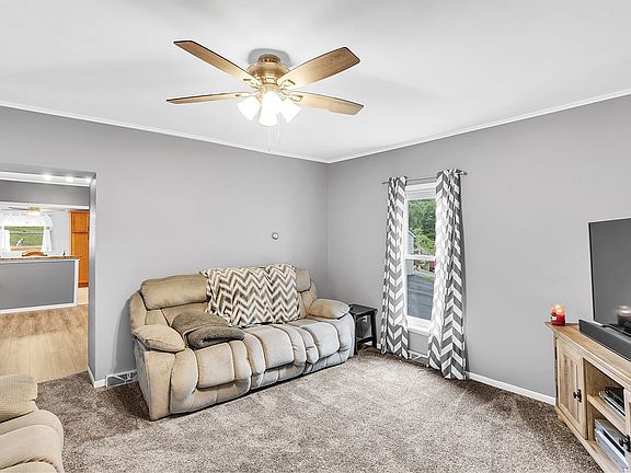 Before you even walk into this home, you'll appreciate the recently-paved driveway leading to your expansive 2-car detached garage with additional covered parking space! The flowing layout boasts attractive updates throughout: new plush carpeting underscores your inviting living room & stairway while attractive modern vinyl plank flooring is found in the expansive formal dining room as well as upstairs hall. The peek-a-boo between the dining room & your eat-in kitchen creates an open feel - ideal for entertaining! There's no lack of cabinet & counterspace, & you're sure to find good use for the coffee bar area! All three bedrooms are located upstairs along with your SECOND FLOOR LAUNDRY! This home has a newer hot water tank, light fixtures, flooring, fresh paint & a home warranty that covers it all! It's perfectly situated in a quiet neighborhood yet walking distance to the school, shopping & restaurants. Come see all that this home has to offer!