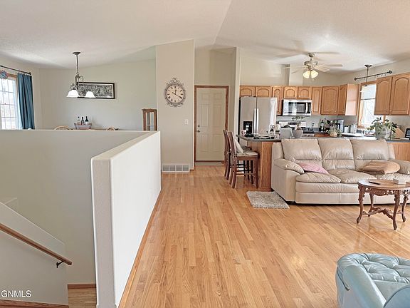 Here is an opportunity to own an affordable home just outside of Bismarck in an already developed area that is quiet and scenic. This is a very nice home located on 2.2 acres of gently sloping land that has been thoughtfuly landscaped to enjoy the view. The main floor is fininshed in full board oak floors and porcelin tiles. The open floor plan is great for the county living style. Down stairs the partially finished basement is ready to complete, all the hard work has been done. The floors are in, the bathroom is ready to finish and all the fixtures are in the home. The four stall garage is insulated and has hot and cold water and a floor drain. There is plenty of room for another out building for the new owner. The recently replace shingles are high impact, high wind, and the siding is also recently replaced. In addition there has been extra insulation installed throughout the home, so it's easy to heat and cool. This is a home ready for a new family to enjoy. Contact your Realtor today.