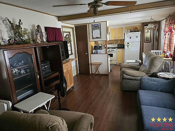 Welcome to this charming and well-maintained 2-bedroom, 1.5-bath single-wide home located in a peaceful 55 plus community. At 56 feet long, this cozy residence offers comfortable living with everything you need already in place. Step inside to find a bright and inviting interior, complete with stylish furnishings and thoughtful updates. The home features a durable metal roof and a central HVAC system with three years remaining on the warranty, ensuring comfort and peace of mind. The 50-gallon propane water heater is in excellent working condition, and the brand-new washer, used only three times, and reliable dryer make laundry a breeze. Enjoy the Florida lifestyle with multiple outdoor living spaces, including a screened room, a spacious Florida room, a covered carport, and a handy storage shed. All living areas are on one level for easy accessibility. Plus, the community pool is just a short 20-foot walk away, perfect for relaxing or socializing with neighbors. Whether you are looking for a seasonal retreat or a full-time residence, this home offers unbeatable value and convenience in a welcoming 55 plus neighborhood. Do not miss out, schedule your private showing today!