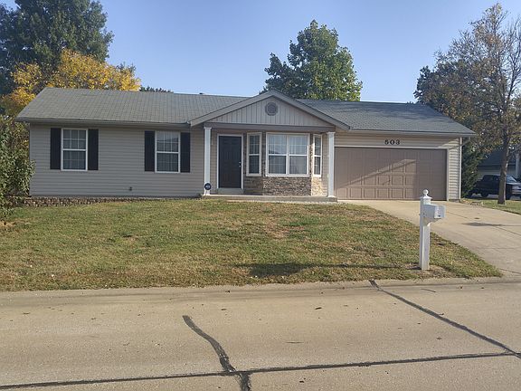 MOVE IN READY! This freshly remodeled 3 bedroom ranch has a ton to offer! The fantastic curb appeal greats you as you pull into the driveway, brand new siding with stone accent, soffits & fascia, and gutters! Upon entering the home you will notice brand new carpeting, fresh paint, and updated kitchen with new countertops, sink, and microwave. All appliances stay, including refrigerator, washer and dryer! The bath has been completely updated with new tile flooring, vanity and lighting. All 3 bedrooms have ceiling fans. This home sits on a large level, corner lot, with a huge deck. Perfect for all your outdoor entertaining! The two-car garage is oversized with a workbench, and lots of shelving. Great location, easy access to Hwy K, 70, and 364. Schedule your appt. today! This will not last long!