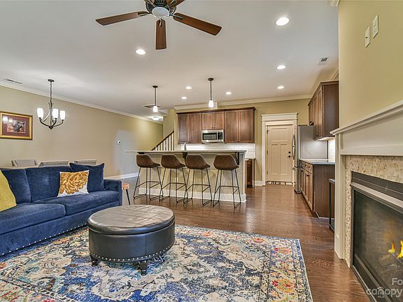 Beautiful townhome in Sweet Birch Commons. This was a model home for the developer and has multiple upgrades. As you approach, notice that the exterior light fixtures are larger than neighboring homes. Inside, you are greeted by a spacious, open-concept living area. Granite counters, stainless appliances, upgraded cabinetry are features unmatched in this neighborhood. Step onto the back patio and enjoy nearly year-round comfort with adjustable window panels and gas fireplace.