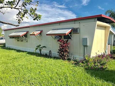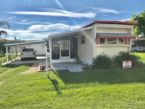 FURNISHED!! LOW LOT RENT OF ONLY $390!!! ALL PARTIES MUST BE 55 YEARS OLD TO LIVE IN THE COMMUNITY.... NO PETS. This home is completely furnished and move in ready! Only asking $6,000 for this 1 bedroom and 1 bathroom split floor plan. The home has carpet throughout with the exception of vinyl flooring in the bathroom and kitchen. The kitchen and living room are very open and the home has lots of windows to let in lots of natural light! The roof is a roof over. There are 2 window A/C units that cool the home nicely and keep the electric bills at a low cost. Lot rent includes the water, sewer and the use of the dumpster or if you wish.... $5 extra a month for garbage pickup! Stove, microwave and refrigerator working well. There is a washer in the screenroom and a dryer on the covered back patio. This home was recently painted inside along with the exterior trim as well! The home is very cute and you must see for yourself...... MUST SEE!! BRING OFFERS!!!