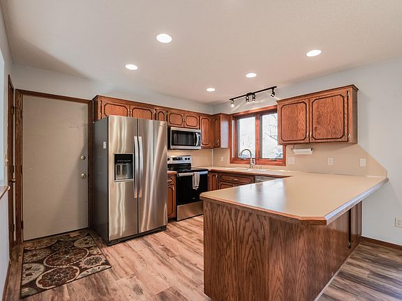 One owner 4 bedroom, 3 bath walk out rambler on a wooded lot. New in the last year.. windows and patio doors, roof, gutters, stainless appliances and flooring. Newer driveway. This home also offers master bath, lower level family room with wood burning fireplace, walk out to large yard and a heated garage! Quiet neighborhood, convenient location, close to schools, shopping, freeway access and restaurants. The deck needs work.