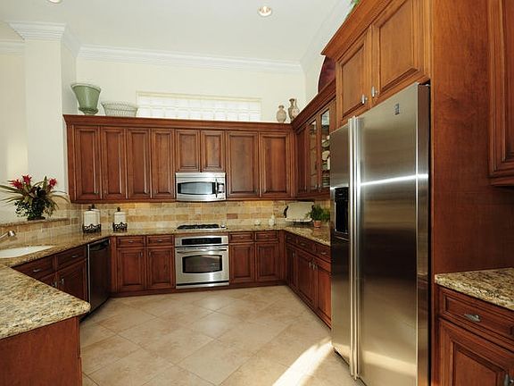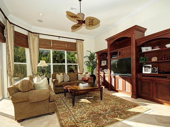 This rare waterfront and golf view home is a gem within Mirasol. The house is flooded with natural light, has an updated kitchen with gas range. The huge yard features amazing sunsets over the lake and 7th hole of the Sunrise Course. Offered fully furnished with high end furniture throughout.