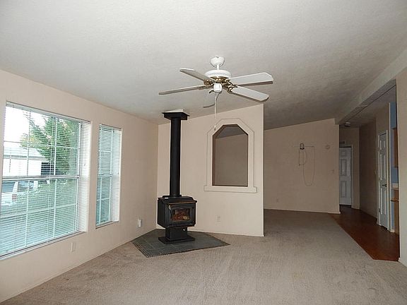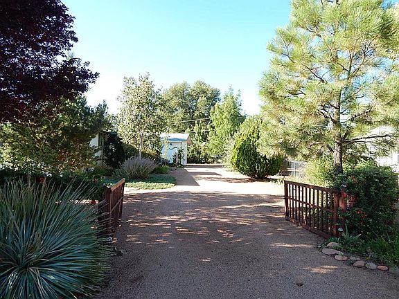 Charm abounds with this 2BDRM/2BA double wide manufactured home. Detached two car garage and beautiful landscaping on large 0.26 acre lot. 1352sf of living space has two living areas, dining room, laundry room and nice kitchen with gas range. Central Heating and Cooling, Security screened doors, wood burning fireplace in living room, and a gated driveway entrance. This home offers lots of natural light, covered side deck with flowers, grapevines, prolific pear tree and an abundant variety of trees. This home is move-in-ready!