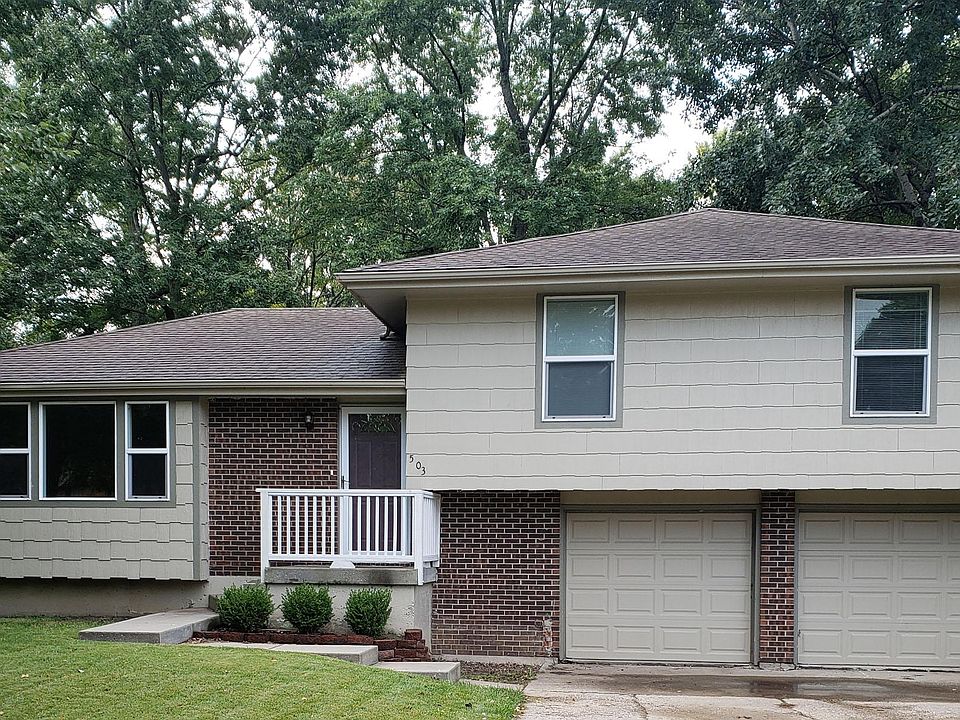 This spacious 4 bed, 3 bath home sits on a large treed lot in a quiet Raymore neighborhood. It features a spacious kitchen, living room and dining room with a door to the back yard. There are 4 bedrooms, including a master bedroom with separate full bathroom. The basement has been remodeled with a fireplace and full bath, and the 4th bedroom. There are 2 fireplaces in this house. 2 car garage. There are washer and dryer hook-ups. Pictures of the basement will be added on Monday. $1695 per month, 2 year lease, rent increases by $45/mo beginning of 2nd year 2 year lease - tenant pays all utilities . NO PETS