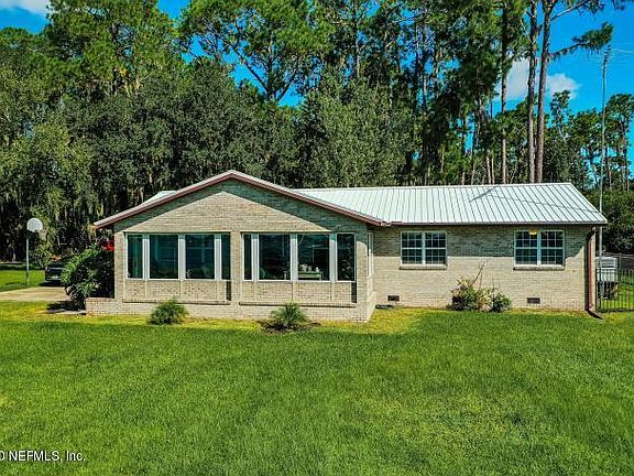 Pristine River Front property! Live in paradise! 275 ft. pristine St. Johns River front Property. 114' private dock w/elec. and a 27+' deck at end. 2.20 Acres. Brick home with 3bd 2 bath, updated custom kitchen, Beautiful Atrium room facing river with a 5+ mile panoramic view of the St. Johns. Kitchen boasts solid surface, with custom butlers pantry, peninsula, and appliance storage. Movable custom Island for all of your entertaining needs. Updated hall bath, with huge walk in shower. Owners suite with reno in progress, walk in shower single vanity. New fenced rear Yard(toward road) with 222' of aluminum fence, concrete slab, and chain link fence for pets. New metal roof with 45 year warranty. 2 wells 1 for irrigation, 1 for home. Home includes, 2 out buildings. must see the beautiful