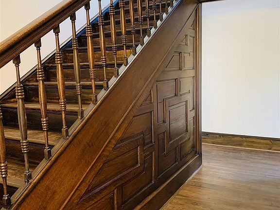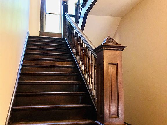 Wait until you see this large 5 bedroom, 3 1/2 bath beauty! You will appreciate the historic charm that was saved throughout this home while ALL of the magnificent updates took place. From the solid woodwork, stained glass and built-ins, to the original staircase that will make you gasp with excitement! On the main level you will find the large kitchen has been completely redone and feature an eat-in breakfast area attached, formal dining room with pocket doors, family room with fireplace, large laundry room, half bath and a den/5th bedroom with built-ins. Upstairs features a large master suite with its own private closet and tiled bath with walk-in shower, 3 additional bedrooms (one is a 2nd suite with full bath) and another shared full bath. Wait...there's more! The third story has been finished into a great bonus room with additional storage that could be suitable for many needs! The large front porch and back deck are both great for enjoying company during summer evenings. The 2 car detached garage and privacy fenced back yard complete this home within walking distance of the downtown square!
