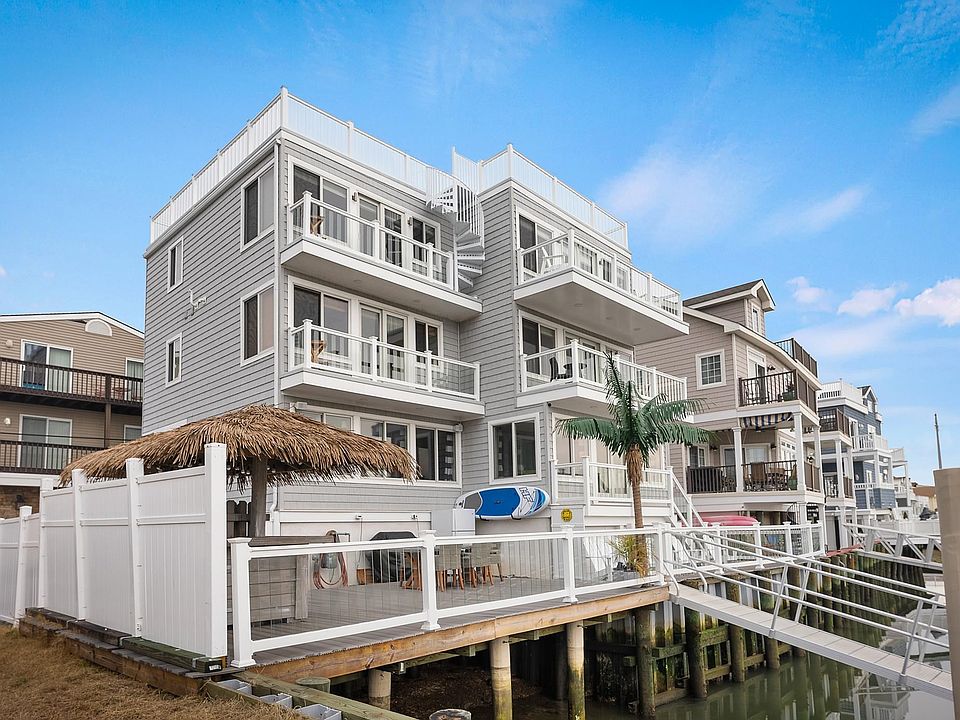 Bayfront single family home with 4 deep water boat slips and a rooftop deck! This upscale waterfront home comes with 5 bedrooms, 4 full baths and an elevator. The kitchen has marble floors, Kitchenaid appliances, Kraftmaid cabinets and quartz counter tops. There are epay hardwood floors and Anderson gentle glide windows and sliders throughout the house. All the bathrooms have a natural stone in them. The house has been tastefully decorated and is coming furnished. The views are incredible from bayfront and rooftop decks. The outside deck over the water comes with a tiki bar! If you are a boater and love the water this type of property does not come along very often. Call to set up a private showing to this unique property.