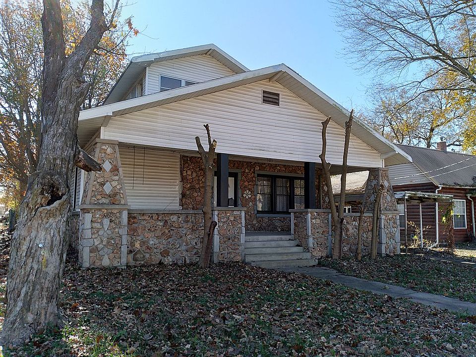 Early 1900's Craftsman Style Stone exterior home. Stone fireplace in living room, formal dining, laundry room. Full bathroom on 1st floor 2brs on first floor and one large bedroom on second floor with panoramic windows all the way around. Rear yard is almost fully fenced in with chain link fence. Small carport. Large front porch. Being sold as is where is (cash sale ONLY) Fixer Upper stone home with tall ceilings, central heat furnace. This three bedroom home will need all new roofing and will need some electrical work and Several other various repairs that will need attention also. So It Is Not Move In Ready. Sqft will be verified soon. Though it is being sold as is I am happy to disclose any information that we have on the property. Photos will be updated as painting and repairs continue to be completed.