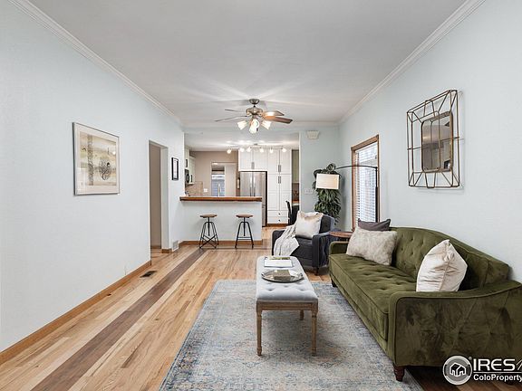 SUNDAY OPEN HOUSE CANCELLED: This beautiful home in Old Town welcomes you with a grand front porch and an open living area. Solid oak floors with a walnut inlay and crown molding create a timeless and elegant space. The inviting kitchen offers breakfast bar that is perfect for casual dining or entertaining, and loads of cabinet space for all of your cooking endeavors. The single-level layout ensures convenience with the primary suite and its private ensuite bath located on the main level. A flex space just off the main living area is perfectly suited as a study/home office and provides an ideal space for remote work or personal projects. The back of the home houses a second bedroom for visiting guests, a roomate, or a potential nursery. Ceiling fans, central air conditioning, and ample storage throughout enhance everyday comfort. Additional highlights include a mudroom/laundry room that opens to covered deck, a stamped concrete patio, and a fully fenced grassy yard with a storage shed and chicken coop. The detached garage is accessible via double swing gates and is equipped with electricity providing variety of potential uses from a standard garage, workshop or even as a flexible retreat. With thoughtful updates, a multitude of natural light, and versatile spaces, this home is ready to impress!