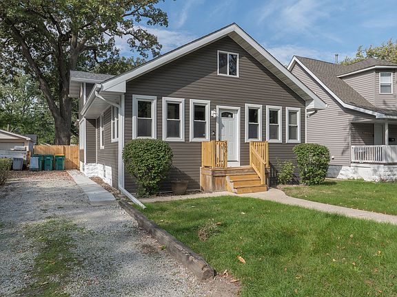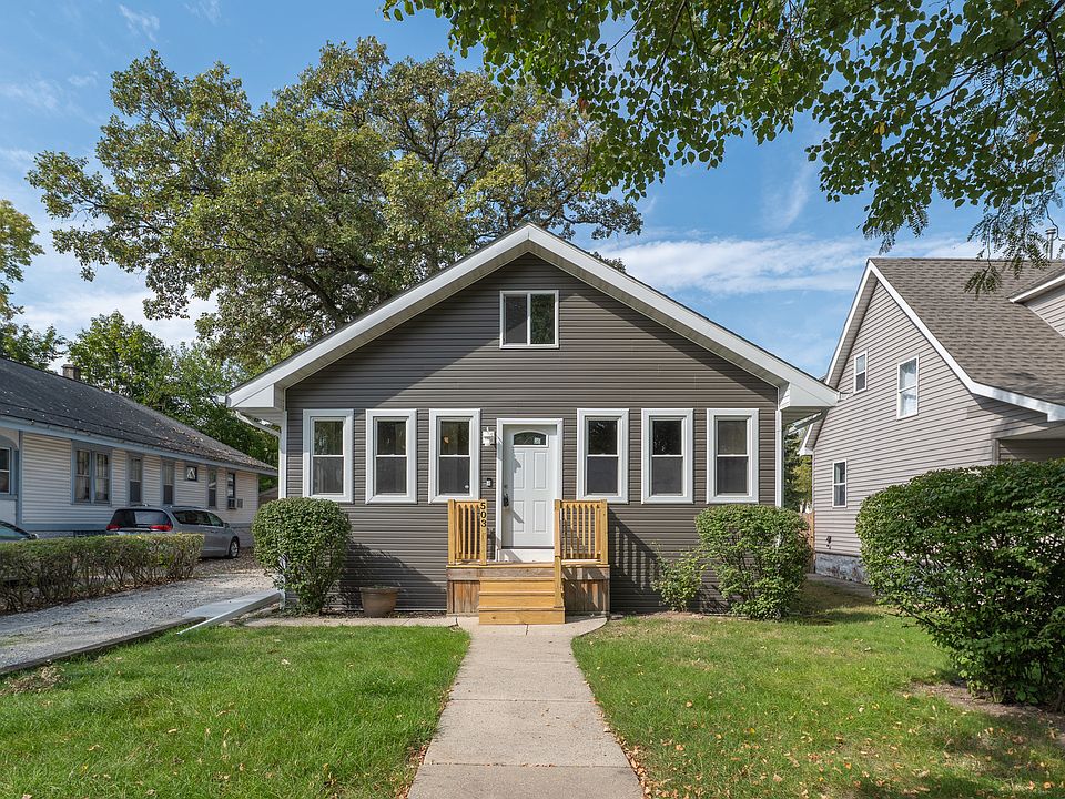 This charming one-story Joliet home offers a unique blend of historic appeal and modern updates. This property boasts flowing hardwood floors, original woodwork, and molding, adding a touch of timeless elegance. One of the standout features is the recently resurfaced hardwood floors, which enhance the aesthetic appeal and provide durability. The house has been thoughtfully updated in essential areas such as the kitchen, bathroom, and exterior, ensuring modern comfort while preserving its old-house charm and details. Inside the home, you'll appreciate the spacious rooms with 9-foot ceilings, arched entries, and a well-designed open floor plan. The east-facing front porch, with its wall-to-wall windows, provides a wonderful spot for your morning coffee and allows for a refreshing cross breeze. Some recent improvements include a new roof, siding, fascia, gutters, privacy fence, and updates to the kitchen and bathroom. Kitchen features include shaker-style cabinets with clean lines and modern design, slow-close drawers and cabinets, butcher block style counters adding warmth, and stainless steel oven-range, microwave, and dishwasher. Crown molding adds character to several rooms; the "floor-to-ceiling" built-in storage in the hallway is a practical touch. For added convenience, the basement includes a half bath, an interior entrance, and an additional separate entrance from the backyard, making it versatile for various uses. There's also a utility tub and hookups for a washer and dryer. The property features a large, fully fenced wooded lot, providing both privacy and a natural, shaded oasis thanks to a majestic oak tree. The garage is conveniently located in the back, and there's parking space for up to 4 to 5 vehicles and street parking. The location of this home is convenient, with easy access to I-80 and nearby transportation, making commuting a breeze. Additionally, just a block away, you'll find a lovely large park with various amenities like a playground, Disc Golf, and a spacious covered eating area with picnic tables, perfect for outdoor activities and family gatherings. This beautiful, quiet neighborhood is close to essential amenities like grocery stores and gas stations, ensuring your daily needs are within easy reach. This home is truly move-in ready, with no carpet, and it's smoke-free, a bonus for those with allergies or sensitivities. Don't miss the opportunity to own this delightful piece of Joliet's history with all the modern comforts you need.