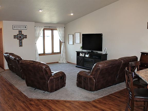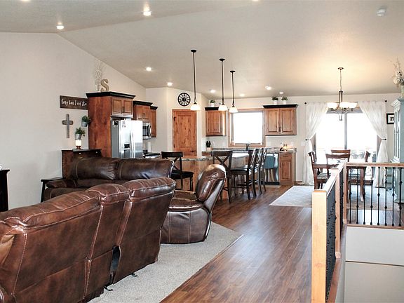 Charming CUSTOM BUILT, FULLY FINISHED RANCH STYLE HOUSE with a touch of the modern farmhouse style! SOLID KNOTTY ALDER DOORS & WOODWORK, along with the oil rubbed bronze fixtures, add to the rustic charm. This beauty sits on almost a 1/4 acre, corner lot. The main floor offers the perfect space for entertaining with an OPEN CONCEPT layout, vaulted ceilings and lots of natural light. New carpeting and floors were upgraded to Luxury Vinyl plank in 2017. The kitchen has beautiful RUSTIC BIRCH CABINETS, a walk-in pantry, stainless steel appliances and a large island that seats 5! There is a MAIN FLOOR LAUNDRY and a ½ bath conveniently located right off the 3 stall heated garage. The garage has water, floor drain and recently upgraded insulated garage doors. The rest of the main level has the much desired 3 bedrooms and consists of a master ensuite with large walk-in closet, 2 ADDITIONAL BEDROOMS and another full bath. The newly finished lower level has the same beautiful finishes as the main floor and is loaded with natural light. Here you'll find 2 more bedrooms with walk-in closets, a large full bath, a bonus room (office, workout room, etc), utility room with storage area, tons of storage closets and a huge family & rec room complete with a rustic fireplace. This home has upgraded Pella windows and doors. Shingles were replaced fall of 2019. There is plenty of room for entertaining outdoors on the large deck and beautifully landscaped yard, which consist of shrubs, perennials, fruit trees and concrete curbing. All this and only 2 BLOCKS FROM RED TRAIL ELEMENTARY! Active Vivint System. Agent related to seller. Seller offering a 1 YEAR WARANTY!