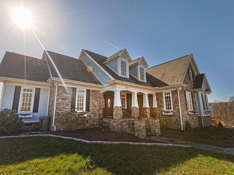This exceptional 4BR, 3 bath home is situated on nearly 4 acres of land that includes beautiful mountain views. Awaiting you inside is an open floor plan with gleaming hardwoods, wood beam ceilings, a floor to ceiling stone fireplace, an abundance of natural light and views that will take your breath away. This home features an entry level master bedroom, a sunroom highlighting incredible views, granite and custom cabinetry throughout and spacious rooms on each level. Enjoy the peacefulness of country living located only five miles from southern Roanoke County.