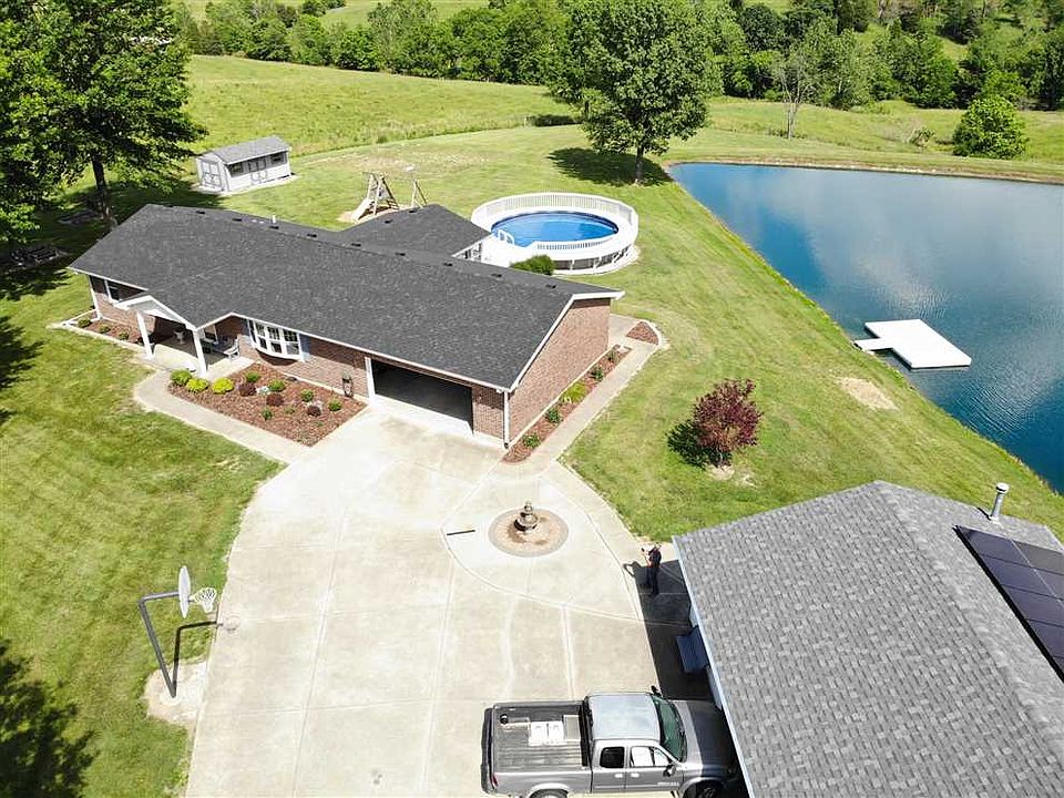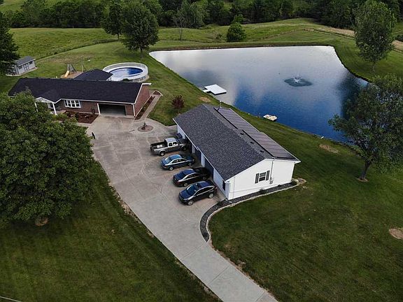 Land for sale. 11.75 acres in Ohio County near Rising Sun, IN 47040. Located near the junction of St Rd 262 and Cass-Union Rd, this mini farm is in a great location with good views of beautiful Ohio County. The house is a brick ranch style with a full unfinished basement. Rooms are framed in the basement but just need drywall, and there's also an exterior door which provides access to the back pool deck. The main floor is 1508 ft sq with 3 bedrooms and 2 full baths, and the basement is the same size with 1 full bathroom and plenty of open space as well as room for storage. From the dining room, glass french doors open to the sun room off the back of the house and overlooks the pool and pond....a great place to unwind for the day. The pool is up and running for the season and a full deck is built around the pool offering a 360 degree 3ft walkway. Just below the pool sits a nice pond with great fishing. The up kept pond is just shy of 1 acre and offers a nice dock for fishing or just hanging out and enjoying nature. Also overlooking the pond is a 3 car heated garage with a framed-in room and 1/2 bath. The 1568 sq ft garage was built in 1992 and contains a Weaver 7000 2 pole lift. 30 solar panels are on top of the garage and offer 310 watts per panel. This efficient system allows for very low electric bills where the avg monthly bill is $75. Just to the south of the homestead and the pond is an approx 7 acre fenced pasture, which is currently being cut for hay. Next to the pasture is a 30x40 ft barn with a lean-to on each side has electric and it's own gravel driveway and barn lot. The roof on the house is brand new (as of 6-20-20) and the roof on the barn, garage, and utility shed are only 3 years old. The house and garage also received new windows just 1 year ago. There are lots of extras that make this place unique and a must see for anyone looking for county living at its finest. Pre-approved buyers only.
