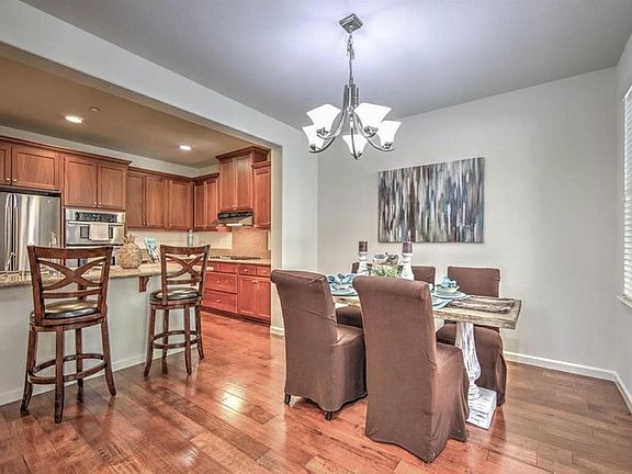 This beautiful townhome is located in the desirable neighborhood of Windermere. It features a very open floor plan downstairs with the gourmet kitchen opening up into the formal dining area and family room. There are 4 bedrooms, 3.5 bathrooms, with the 4th bedroom with a private bathroom, which could be used as an au-pair, in-law suite or office. Close to community parks, top rated schools, walking distance to Dougherty High School, walking trails and freeway access. The gourmet kitchen features: slab granite counter tops, stainless steel appliances including a 5 burner gas cook top, large island with bar seating, large pantry and beautiful hardwood floors. The family room features hardwood flooring, a ceiling fan, wood blinds, recessed lighting, gas fireplace and wiring for surround sound. The master bedroom is spacious with a ceiling fan, crown molding, and a balcony. The master bathroom has tile flooring, soaking tub, shower with glass enclosure, dual sinks and large walk-in closet. Other features include: hardwood floors downstairs, ceiling fans in all the bedrooms, recessed lighting, wood blinds through out, and a water softener. House is furnished for pictures only. House will be delivered unfiurnished. Tenants pays all utilities, home warranty and renter's insurance.