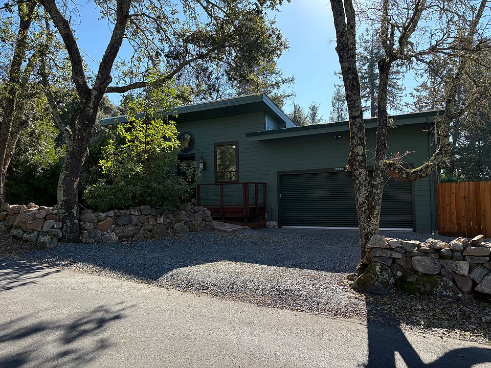 Brand new, never lived in open and airy, newly constructed 2 bedroom, 1.5 bath home with granite kitchen and bath, in-unit washer and dryer, and private driveway. Available March 1, this private country setting with several markets closeby and a 15 minute drive to downtown Santa Rosa is surrounded by mature oaks, cedars with a long view of hills across the street. A 6'x20' deck in the front offers a relaxing spot for evening sunsets. High ceilings and skylights with strategically placed large windows provide a sunny atmosphere and views of evergreen trees from every window. A two car garage provides a large storage area with shelves. . Owners live onsite in a private setting on the 4 acre parcel. No pet policy. Month to month lease and continues as a month-to-month tenancy. Each month, lease may extended or terminated by either party with a 30 day notice. Credit check upon applying is required along with 3 references. First month rent and security deposit required. Security deposit shall not be used by tenant in lieu of payment of last month's rent. Complete lease details upon approval of application and credit check. Tenant pays for electric, garbage, internet, or cable. No gas on site. No smoking and no pets. Tenant's responsibility to maintain regular garbage service. Small yard, no lawn or landscape.