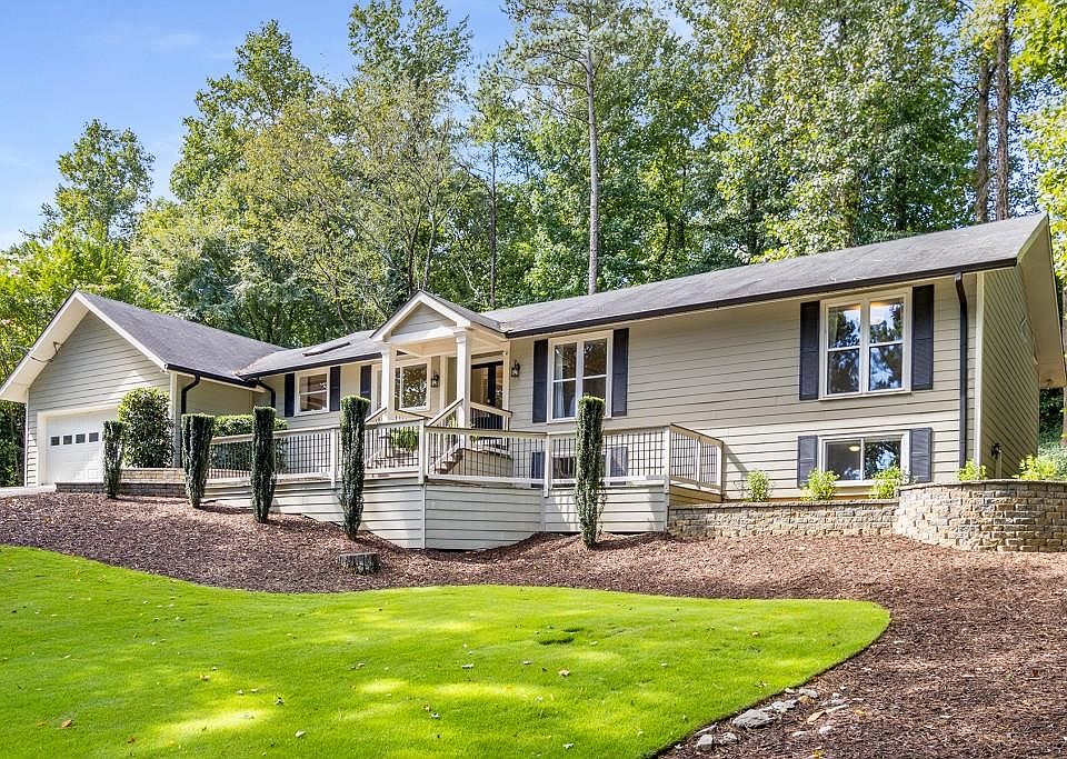 This is the one! Move right into this renovated ranch on a full basement in quiet Lake Fjord. You'll immediately feel the charm in this light and bright home zoned in desirable Mount Bethel/Dickerson/Walton district. Vaulted ceilings, hardwood floors and renovated kitchen and bathrooms make this home hard to beat. On the main floor you'll find the sunniest eat-in kitchen with skylights and picture windows to capture the beautiful view, stainless steel appliances, granite counters, a spacious island, gas cooktop and vaulted ceiling. The cozy dining room is just off the kitchen and open to the great room. The great room is the heart of the home with beamed vaulted ceilings, gorgeous fireplace and views of the private, wooded backyard. Continue on the main floor to find two spacious bedrooms and updated hall bath as well as the sizeable primary bedroom with vaulted ceilings and beautifully renovated bathroom. Don't miss the screened-in porch, back deck, fire pit and freshly sodded yard! Back inside, step downstairs into the finished basement and you'll find an expansive and bright recreation room, separate bedroom and full updated bathroom PLUS ample unfinished space. Excellent location - convenient to restaurants, shopping, parks, interstate access and downtown Roswell. Outdoor enthusiasts will appreciate the close proximity to Willow Park, Morgan Falls Overlook, The Mill, and Chattahoochee Nature Center.