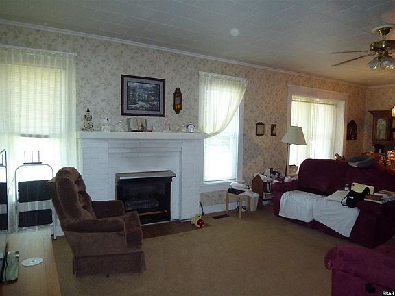 Beautiful & convenient location, 2.13 acre fenced lot with barn for livestock, shop & garage plus a one & a half story dwelling with vinyl siding recent roof, HVAC & windows. The main floor has great room with gas fireplace, kitchen with all appliances, utility, 2 bedrooms, full bath, sun porch with climate control while the upstairs has 1 bedroom and a full bath. Open porches on front & rear allow enjoyment of beautiful, treed lawn.