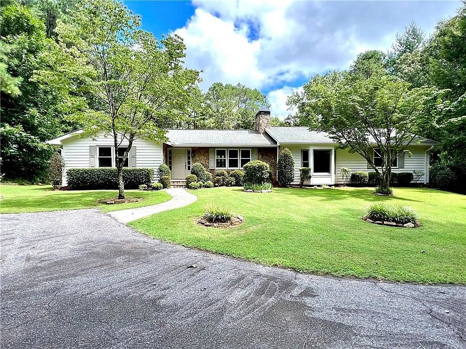 This well-maintained ranch with a fully finished basement is nestled in a quiet neighborhood on a private 2.48 acre lot in Forsyth County. The neighborhood has a quaint private lake and pavilion for resident use. With the finished basement, this home has approximately 4,000 sq. ft. of livable space. The main floor boasts a large family room with a solid stone fireplace, hardwood floors and vaulted ceiling with exposed wood beams. 3 bedrooms, 2.5 baths on the main floor, additional bedroom and full bath in basement (Total of 4BR, 3.5BA). Kitchen, dining room, and laundry room on the main floor as well. French doors from the family room and owner suite open up to the freshly stained wooden deck overlooking the incredible flat backyard. The possibilities with this outdoor space are endless. The fully finished basement consists of a galley-style kitchen with appliances, a spacious family room, office/playroom, bedroom, full bath, and tons of storage space. This home has county water along with its own private well with high water volume, perfect for all of your outdoor water needs. This home is a must see with updated paint throughout the entire interior and exterior, along with new light fixtures and carpet throughout! Don't miss this incredible opportunity! Listing agent is one of the sellers of this property.