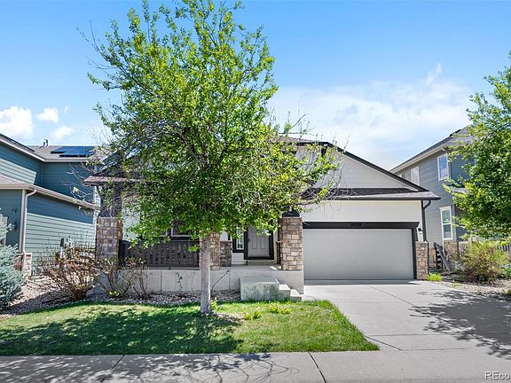**Explore this stunning 3-bedroom, 3-bathroom ranch-style home in Copperleaf, featuring an open floor plan ideal for modern living*The kitchen boasts granite countertops, a stylish tile backsplash, and all appliances included, alongside a spacious pantry*The main floor master suite offers a tranquil retreat with a large bedroom, walk-in closet, double sinks, granite counters, and a comfortable shower with seating. An additional bedroom on the main floor provides easy access to a full bath nearby*A versatile dining/den/flex space awaits your personal touch*Downstairs, discover a third bedroom, another full bath, and a fantastic bonus area perfect for media or games, flooded with natural light from large egress windows*Recent upgrades in 2023 include fresh interior paint, a new hot water tank, radon mitigation system, recessed lighting fixtures, and a ceiling fan in the guest bedroom*And think about that lower monthly electric bill with installed solar panels (inlcuded in price, not leased!) and new CertainTeed Northgate ClimateFlex Class 4 Shingles*Conveniently located near shopping, E-470, DIA, and the Aurora Reservoir, this home offers easy access to amenities. Don't miss your chance to make Copperleaf your new home!**