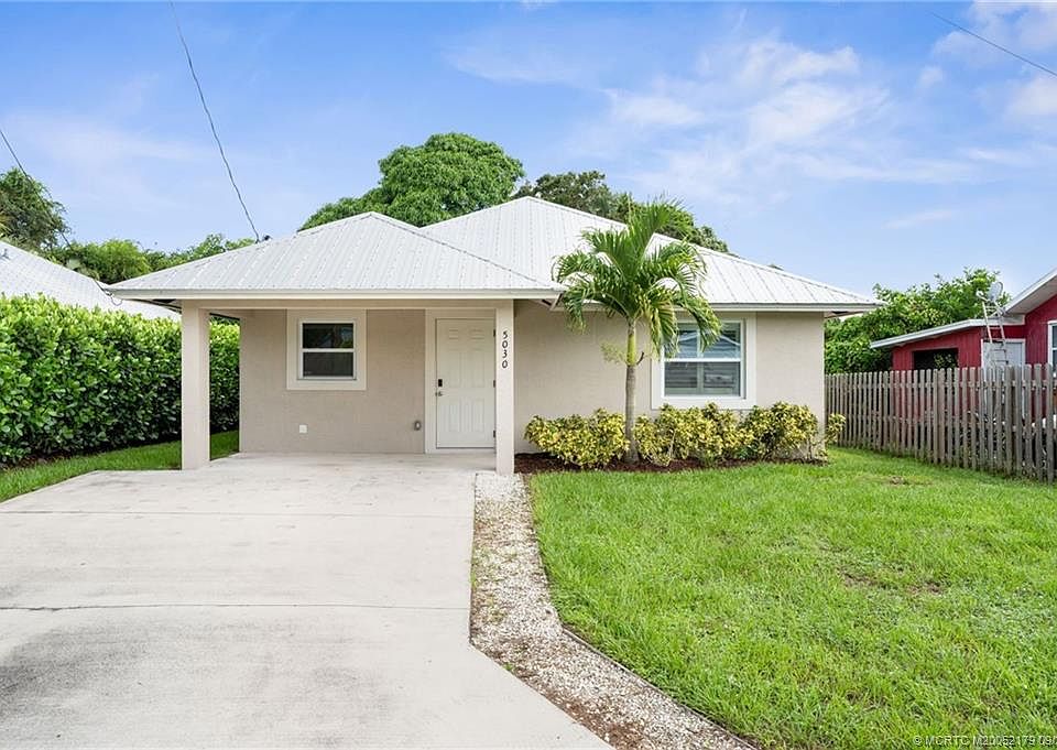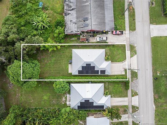 Discover a slice of paradise! Built in 2021, this 2 bedroom, 2 bathroom home combines modern comfort with coastal charm. Featuring luxury vinyl flooring, impact windows, metal roof, and an open layout filled with natural light. The chef’s kitchen boasts granite countertops, stainless steel appliances, and crisp white shaker cabinets. A spacious primary suite offers a peaceful retreat with ample storage. Outside, enjoy the expansive yard, perfect for entertaining or gardening. This home also features paid off solar panels, keeping your electric bill impressively low. With tranquil water views, no HOA, and proximity to beaches, marinas, dining, and A-rated Martin County schools, this move-in ready home is ideal for full-time living, a vacation escape, or investment.