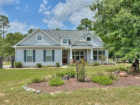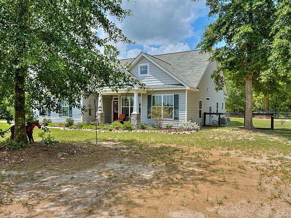 Looking for peaceful,turn key horse property w/ miles of deeded trails out the back gate? Welcome to Sun Country Farm! This 2017 open concept 3 bedroom, 2 bath, 2 car garage property is loaded with Southern Charm. Tastefully decorated with easy care in mind, finished w/ current colors and LVP flooring throughout. Enjoy the expanded kitchen w/ granite counters, subway tile and breakfast bar. Master bedroom with stone fireplace, tray ceiling, oversized bath & large walk-in closet. Family room and dining room both have views out large windows. This animal haven is fully fenced & cross fenced w/ 4 stalls, 3 paddocks & pasture. Barn complete w/ large tack room & feed room. Each matted barn stall has a dutch door to a private paddock. Front and back yards have colorful landscaping fenced to keep your canine friends separate from the horse areas. The insulated matching garden shed w/ AC or turn into workshop. Community pond for fishing/kayaking. Community dressage arena nearing completion.