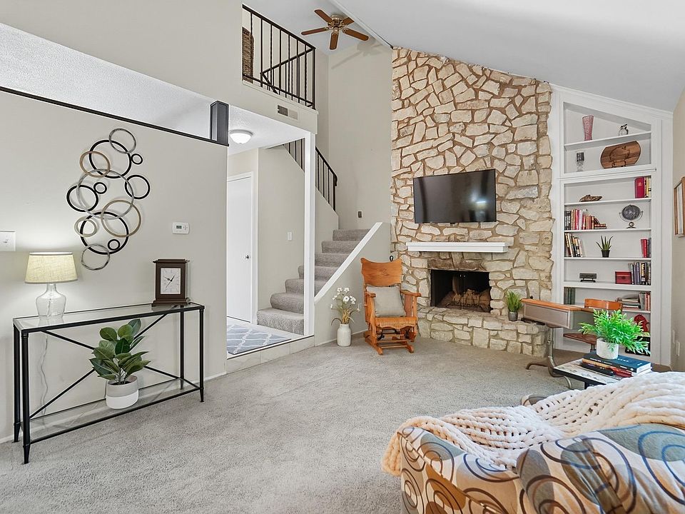 Tucked away in a charming community surrounded by nature, yet just minutes from Stellhorn, Maplecrest, I-69, & Coliseum shopping & dining, this updated home features heated ceramic tile floors, open-concept living, & soaring great room w/ floor-to-ceiling stone fireplace. Gourmet kitchen w/ rich custom D&B Amish cabinets, quartz counters, tiled backsplash, & all appliances included. 3 large glass sliding doors bring the outdoors in w/ natural light & private wooded views. New Furnace/AC 2020! Also, featuring a main-level den, guest bath, & laundry (W/D 2023). Upstairs: primary suite with Juliet balcony, dual closets, & bedroom #2. Bathroom features Copper River cabinetry, crushed granite countertops, & dual sinks. So much character throughout such as transom windows, custom built-ins, & more! Garage w/ pull-down stairs floored attic storage. HOA covers water, sewer, trash, snow, siding, roof. Enjoy the clubhouse & pool during the sunshine months w/ friends and family! Low-maintenance living with natural charm!