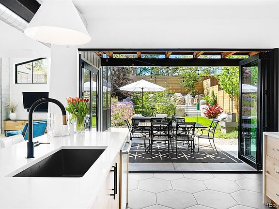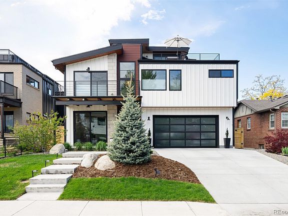 Indulge in the impeccable craftsmanship of this modern residence designed by Work Shop Colorado. Picturesque landscaping surrounds the striking exterior, inviting entry further inside to an open floorplan bathed in sheer luminosity. Enjoy quiet work-from-home days in a bright office w/ outdoor access to a front patio. Contemporary lighting crowns the dining area extending into a chef’s kitchen boasting high-end appliances and dual islands. Vaulted ceilings draw the eyes upward in the great room grounded by a floor-to-ceiling fireplace. Vast walls of glass open to a tranquil backyard oasis complete w/ a patio, hot tub and a fountain. An open staircase ascends to a luxe primary suite boasting a private balcony, a large walk-in closet and a spa-like bath. Entertainers delight in a third-floor flex space w/ a wet bar and access to a rooftop deck flaunting sprawling mountain views and a firepit. Poised in a coveted West Highland location, this home offers walkable proximity to numerous restaurants, shopping + farmers market in Highland Square, Sloans Lake, Edgewater and Tennyson.