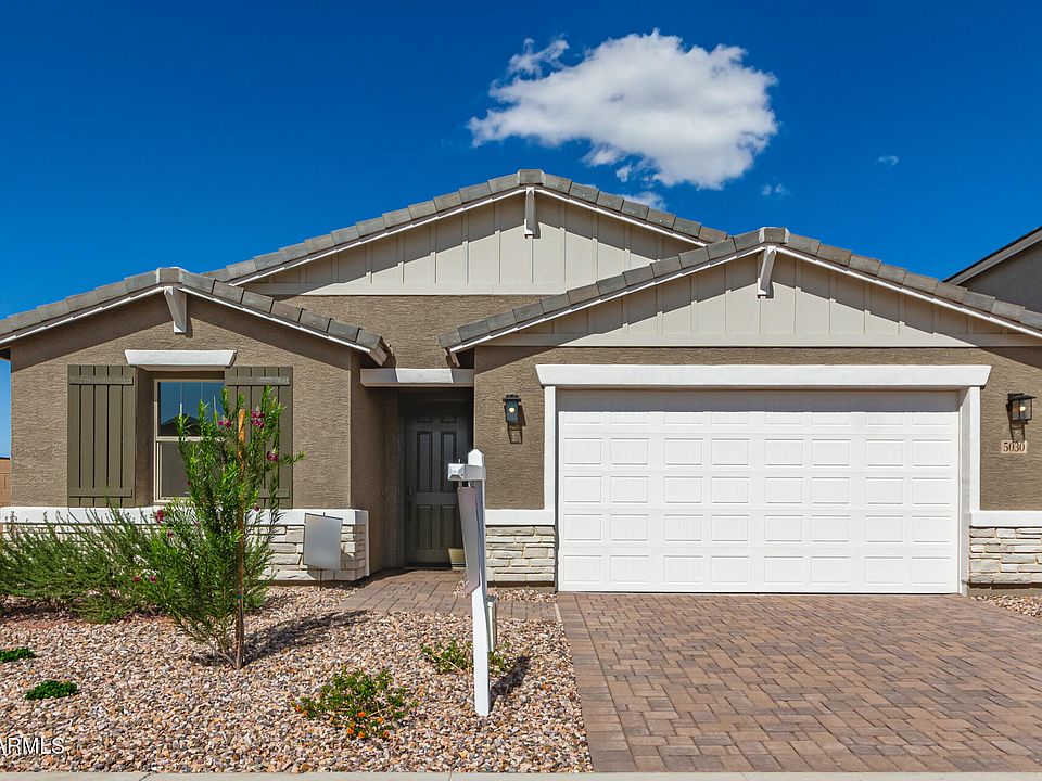 Explore this impressive Slate home, ready for quick move-in! These 4 bed, 3 bath, 2-car garage layout includes a 4th bedroom with its own private bath. Features include an inviting covered entry, open dining area, large great room, and a stylish kitchen with 42'' cabinets, quartz countertops, tile backsplash, center island, and walk-in pantry. You'll also find a spacious primary suite with a private bath and walk-in closet, central laundry, and a covered patio.