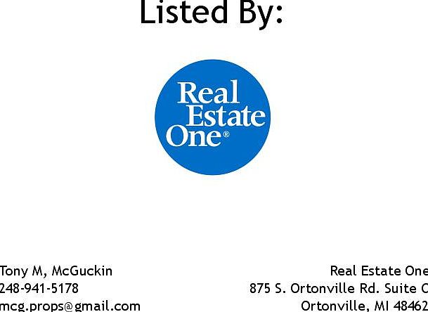 WELL BUILT HOME IN GOOD CONDITION / FRESH PAINT/ OPEN KITCHEN / WOOD FLOORING / FULL BASEMENT / NICE VIEWS OF THE LARGE BACK YARD / 2 CAR GARAGE / STORAGE SHED/ CLOSE TO SHOPS AND THE HIGHWAY / BRICK EXTERIOR. Brokered And Advertised By: Real Estate One Professionals Listing Agent: Tony M Mcguckin