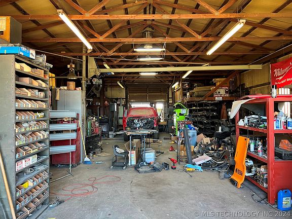 The property's welding shop is equipped with water, electric, and tools, spanning 30’ x 72’ with a 12’ ceiling, ideal for starting your own business venture.