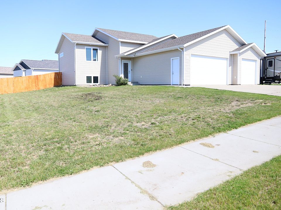 Welcome to this beautiful home located in Northwest Mandan. Its located a block from Red Trail Elementary School. It has a great open floor plan and modern style. Two bedrooms and a bath up stairs with the primary bedroom having a large walk in closet. Basement is unfinished waiting for you to make it your own. It is set up to have to have two more bedrooms, bathroom, living room and utility room. Has a 24ft x 30ft three stall attached garage. Set up your appointment today!