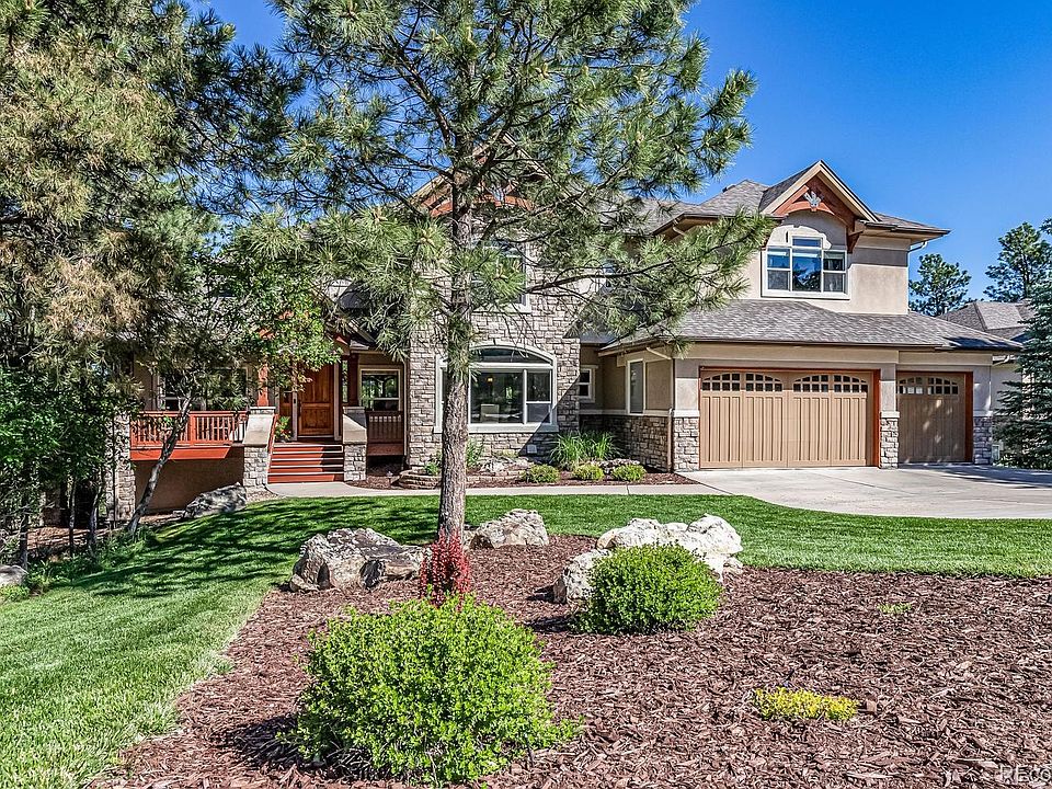 Meticulously maintained custom home in The Timbers neighborhood. Surrounded by mature growth Ponderosa Pines and backing to 24 acres of open space this is the ideal setting for any family. The second you enter your eyes are instantly drawn to the open space and forest behind the home. The towering two story family room leads out onto the wrap around deck with multiple entertaining areas. The large island kitchen is fully equipped with a gas 5 burner cooktop and hood vent, microwave, double ovens and 2 large pantries. The main floor office is the perfect spot to get the job done. It has built in bookcases and a private access door to the wraparound deck. Notice that each of the large bedrooms upstairs has its own walk in closet. One of the secondary bedrooms has an ensuite bath while the other 2 are connected via Jack & Jill baths. The master suite is second to none. It overlooks acres of open space and is the perfect spot to retire after a long day. If the fireplace isn't enough to make you relax then you should enjoy the large double but separate vanity, jetted tub and large walk in shower. Venture to the walkout basement to have some fun. Equipped with a full bar, TV room, exercise room, game room area and flex space. There is a spot for everything and everyone. The neighborhood trail is behind the home so you have quick access to the Bayou Gulch Park. Buyer to verify measurements. House has a 6 zone, whole house audio system with ceiling and deck speakers. Speakers stay with the house.