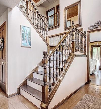Beautiful 2-story entry way...bamboo flooring on first and second floor....stone hearth log burning fireplace in family room, corian countertop in kitchen with deep stainless sink access to patio from eat in nook in kitchen and access to wrap around deck from family room... Needs some TLC but overall great house. Taxes taken from realist and room sizes approxmate