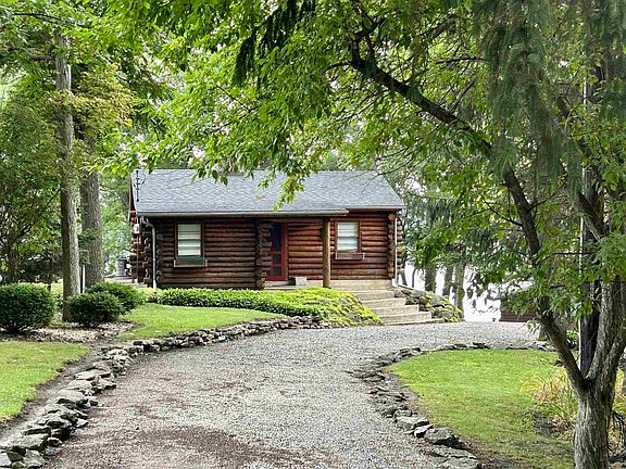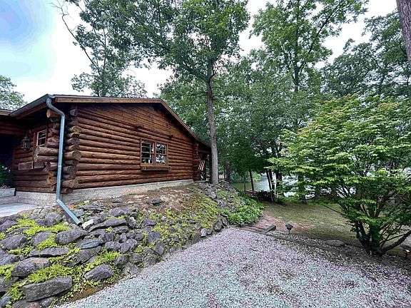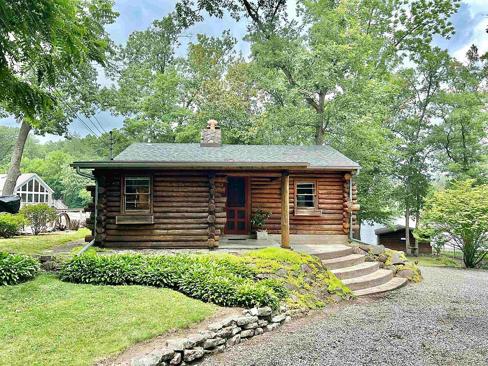You will instantly fall in love with this ADORABLE lake side retreat! Gorgeous unmatched views and most picturesque lot around!! Built with logs from trees cut right off the property and set atop a hill, this home beckons you inside with a wide entrance perfect for a couple of rocking chairs. Living area has a gorgeous stone fireplace for chilly Indiana nights, and room for a large sectional or multiple couches. Bathroom is newly redone with extra cabinetry added and has a stand up shower. Kitchen is updated to light and airy, but original cabinetry remains on property in boat house. The woodwork in this home is breathtaking and so are the views! Windows are plentiful so you don't miss a moment. The back porch is a little retreat in itself! Room for a swing and picnic table, and is attached to a stone patio perfect for grilling and gathering. Down the slope towards the water you'll find a grassy area for playing, a fire pit, floating porch, dock with swim ladder, and boathouse with lift! Approximately 125' of lake front footage and located at beginning of cove, so water traffic is limited! The view of lake combined with the privacy of the trees makes this the PERFECT retreat. Front of property features natural springs so it is extra deep and water is clean. This is house is a true charmer and ready for new memories to be made!