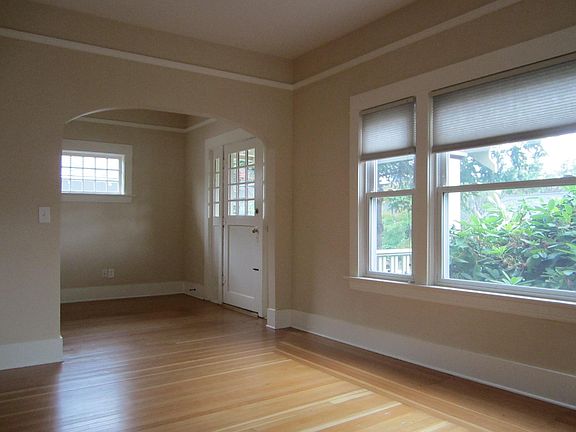 This fabulous 1914 Portland Craftsman has been updated for modern living, yet retains all of its classic character. As the upper unit of the duplex, the apartment has a gracious front stair and porch, opening onto an sizable entrance foyer. Large living and dining areas flow into a well-appointed kitchen, with ample storage and newer appliances. Two bedrooms and a bathroom sit just off the main rooms, while the upstairs bedrooms share a master bath with a separate soaking tub and walk-in shower. In the back, there is a private landscaped yard and adjacent paved patio, with a large raised bed for gardening. A shared garage shed makes for a great place to store bikes and camping equipment. Accessible from the kitchen, the basement laundry area features newer washer and dryer, plus more storage space. The rest of the basement is given over to the other unit of the duplex, which is occupied by the owners and has an entry at the side of the house. Centrally located in an ideal walking neighborhood, the house is close to restaurants, shops, and entertainment, and two bus lines run conveniently nearby. Other features of the home: Finished wood floors in entry, common living areas and on upper floor, new carpet and pad in lower floor bedrooms. Updated plumbing, electrical systems and duct work. Forced air gas furnace, electric hot water heater. Double-hung windows with insulated glass and custom widow shades. Upper floor walls and ceiling fully insulated, whole house seismically retrofitted for earthquake protection. On-street parking. As the on-site owners, we are discrete, easy-going, and respectful of the upstairs tenants space and privacy. Our long-term renters have decided to move on, and we are looking for the next great neighbors to call the upstairs home. The property is presently occupied, please do not disturb the existing tenants. Contact us through the listed e-mail address to set up an appointment if you would like an in-person tour of the house, or have other questions about the place. Thanks for looking! Application terms and conditions: $45.00 nonrefundable application fee per applicant. Minimum 2.5x monthly rent to net income ratio of all tenants combined. Verifiable current employment, 6 months or greater in duration, good rental history, clean background check and credit are a must. No co-signers please. We thoroughly check all information listed on applications. Lease terms: Occupancy limited to 4 or less tenants. One year lease, renewable as same after first year. Security deposit equal to one month's rent. No smoking allowed on property. Recycling / garbage service and landscape maintenance provided by owner, gas/electric/water/internet paid by tenants. Additional $500.00 deposit required with pet(s), $25.00/mth. pet rent per pet (two cats max.), plus pet cleaning fee required at end of tenancy as part of signed pet agreement.