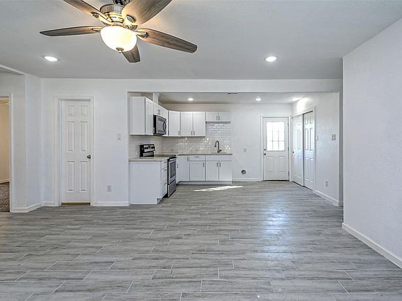 Top to bottom remodel, including new roof, siding and plumbing! New wood style tile floors throughout main living areas and bathrooms; new carpet in the bedrooms. Chic white kitchen, with new cabinetry, marble countertops and subway tile backsplash, and stainless steel appliances; open to the large living room - great for entertaining! Large corner master suite; en suite bath boasts a dual sink vanity, soaking tub and separate shower, accented by a full wall of stacked tile. Two additional bedrooms, both with ceiling fans. Additional shared full bath with marble style tile. Large fenced backyard. Easy access to OST, 610 and 45. Don't miss this gem!