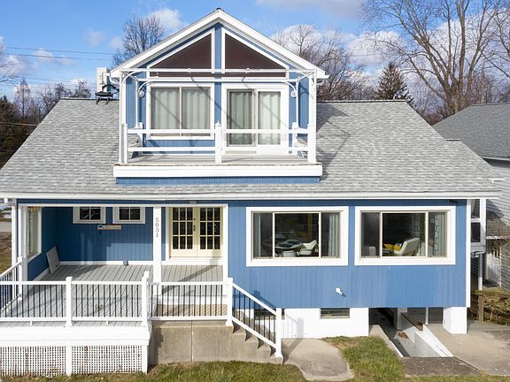 ''My Blue Heaven'' has been beautifully remodeled on the North Bank of Buckeye Lake, close to The Buckeye Lake Yacht Club. Many high end updates, while keeping the original charm of the home, w/gleaming hardwood floors on all 3 levels. Lake level has inviting living room w/eating space, and sitting area w/new contemporary gas log fireplace. Kitchen has been totally redone, new cabinets & counter tops, stainless steel appliances, new lighting, subway tile, & eating bar. Owner's bedroom w/vaulted ceiling, guest bedroom, & full bath. Covered porch overlooking the lake, and your own dock pad. Upper level w/amazing view from the deck, also w/living room, kitchen w/appliances, eating bar, full bath & bedroom. Street level w/2 separate entrances, living room, bedrm, bath & kitchen plumbed for sin