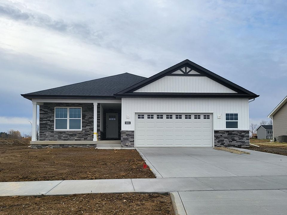 The AZALEA, featuring 3 bedrooms and 2 baths, has an open concept. Standard features include a large great room with vaulted ceiling, kitchen includes granite counters, soft close cabinet doors & dovetail drawers, crown molding, pantry, stainless steel microwave & dishwasher (options available), main bedroom w/tray ceiling, main bath, Large walk-in closet, bathrooms include quartz vanity tops, hardware & lighting options, and full 8' basement (plumbed for future bath). Exterior features include full landscape package, vinyl board & batten siding and cultured stone exterior, concrete drive and walks, covered porch, patio or deck (specific to plan).