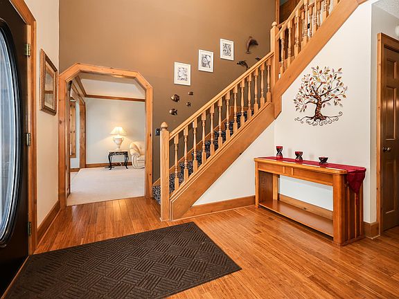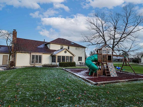 OPEN HOUSE FEB. 23 1-3 PM NEW PRICE!! DON'T MISS OUT ON THIS STUNNING CUSTOM HOME CRAFTED BY BOB BUESCHER, IMPECCABLLY MAINTAINED!! This property boasts 4 bedrooms, 2.5 bathrooms, & nearly 4,600 square feet of thoughtfully designed living space. As you step through the front door, you're welcomed by a 2-story foyer with abundant natural light and one of the home’s two grand staircases. Enjoy the lovely Living Room with a quaint sitting area. Spacious Dining Room for entertaining. The expansive kitchen features ample custom cabinetry, large islalnd with raised breakfast bar, desk area, gorgeous granite countertops, refrigerator & dishwasher are only 4 years old, a double built in oven, & large double door pantry. Additional pantry space in the Laundry Room, Washer & Dryer to stay/<one year old. Bamboo flooring enhances the elegance throughout much of the home, as well as the Custom upgraded wood trim through out with wood cased archways. The spacious great room invites relaxation and quality time with loved ones, complete with a floor-to-ceiling brick gas fireplace, vaulted wood ceiling, overlooking balacony, wet bar area, and the second grand stairway. Additional highlights include 2 wet bars, a heated four-season room, and breathtaking lake views from the master bedroomn, nice balcony over looking the Great Room. Spacious Owner's Suite offers a nice sitting area, large bathroom featuring double vanity with granite counter tops, large walk in closet, air jetted tub, catheral ceiling, & separate shower. Three additional spacious bedrooms with ample closet space. A dedicated home office with extensive custom trim and custom built-in bookshelves provides the perfect workspace. The finished lower level features stylish stamped concrete flooring, a bonus room that could serve as a 5th bedroom, room for a pool table, rec room/TV area, wet bar area with refrigerator. DONT MISS the special play area for kids under the stairs. The oversized 33x22-foot garage is equipped with epoxy flooring, lge workbench, storage area, & utility sink. Roof/shingles new 2021 with a 50 year shingle warranty, siding & gutters new 2024, driveway new 2020, whole house humidifier new 2020. Close to the pool/golf/3 parls/ponds/walking trails/tennis/basketball courts. 23x15 stamped concrete patio. Two yr old playset stays with rubber mulch. SO MANY UPGRADES TO MENTION!! SITUATED ON A .64 ACRE CUL-DE-SAC LOT—ONE OF THE LARGEST LOTS IN THE SUBDIVISION—THIS HOME IS TRULY A RARE FIND.