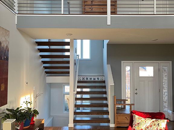 3,780 sqft (5 BD, 3 BA) luxury home with contemporary design set in the Jacobs Landing neighborhood. Jacobs Landing is unique in that it belongs to Champaign (10 min. drive to downtown) but is associated to the highly praised Mahommet-Seymour public school district (with free school bus service). The house has a basement (1 bedroom, 1 office and 1 entertainment room), a first floor (1 bedroom, 1 bathroom, kitchen, living room, 2.5 car garage) and a second floor (3 bedrooms, 1 master suite, 2 bathrooms, laundry room). Extra-large windows provide plenty of natural light. The house comes furnished with modern and latin style and all the expected electronics and appliances. Floors are wood, beige carpet or black Italian tiles. 17 solar panels on the rooftop provide most of our electricity for free. EV charger in the garage. Large front yard and backyard with plants, trees and raised bed. Beautiful sunset view guaranteed in the evening ! The neighborhood is very friendly, it is composed of faculty/staff members from the University, of Doctors and employees at Carle and of other professionals. Many children live in the neighborhood. The house is in close proximity to Carle at the Fields, parks, interstate access and bus routes providing transportation to the University of Illinois, Parkland College, YMCA, supermarkets and more. No smoking, pets are allowed if agreed upon. Minimum stay 9 months. Utilities are not included. Smoking is not allowed. We require at least an income-to-rent ratio of 3, excellent credit score and no prior evictions, property damage, or unpaid rent.