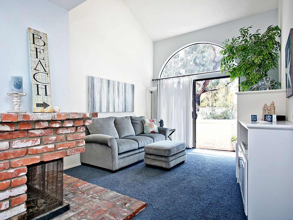 Gorgeous Cabo Del Mar penthouse unit steps to wetland and beach trails. This gorgeous 2 bed/1 bath loft style retreat has been completely gone through including all new designer lighting fixtures, recessed LED lighting, all new switches outlets dimmers and GFCi's, new paint, refinished cabinetry in kitchen and bath, new backsplash and accents, newer carpet, new custom built-ins throughout, the list goes on. Stunning 30 foot ceilings with wraparound fireplace make this home inviting no matter what room you are in. Large master bedroom with vaulted ceilings leads to the patio via your own balcony slider, or to the dual master bedroom closets into the large master bath with dual vanities, separate water closet area and new large soaker tub with updated glass shower door. Spiral staircase leads to second bedroom/loft with large closet, utilize as an office, guest bedroom or however you choose. Large full width balcony is great for entertaining guests or relaxing under the shade with ample room for seating and outdoor dining. Large storage closet off balcony for bikes, gym equipment or just extra storage. This home is steps to several grocery stores, restaurants, Huntington Harbour, coffee shops, hiking trails, the beach, truly an amazing gated beach resort!