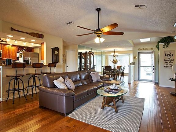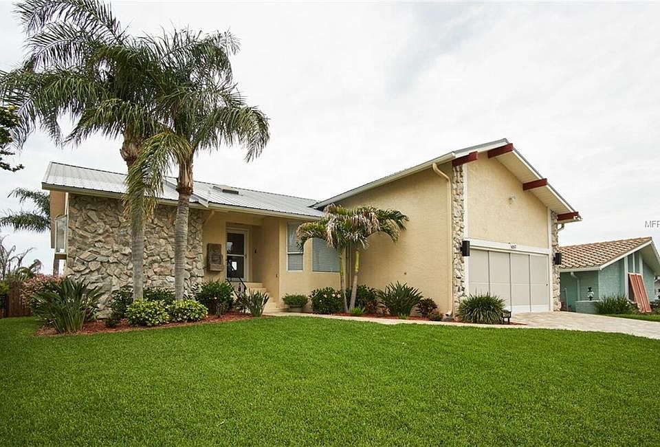 Immaculate, elevated Gulf Harbors home on deep water with your very own 10,000 lb boat lift and a additional dock. This home only needs a new homeowner and EVERYTHING has been updated in this beautiful home. The home may have the best lawn in all of the county, lush landscaping, brick pavered driveway and a impressive entry welcome you HOME! The exterior of the home is timeless and classic with a lifelong metal roof. This home is elevated and your flood insurance cost will be far less expensive. The interior of this home has lots of room for entertaining, stunning wood floors, neutral decor and high ceilings with ceiling fans. Over-sized formal dining room make this home a wonderful place for formal entertaining as well as the casual waterfront lifestyle that living in Gulf Harbors offers, the best of both worlds. The master suite is large, including a magnificent resort style bathroom. You will feel like you are on vacation everyday. Oversized shower and a huge whirlpool tub for relaxing and a large walk in closet too. Sliding doors lead to a additional room that can be used year round and it all overlooks water. Solid wood cabinet, granite and stainless appliances make this kitchen a gem. Additional bedrooms and bathroom are also impeccable. Water views from almost every room. Boat lift, extra deck and dock, covered spa, rain water for sprinkling the back lawn and washing the boat. Minutes away from the Gulf of Mexico by water. Stunning sunsets daily, start living the life you want.