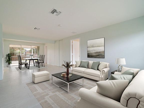 Wow! No HOA. Freshly updated, this home features a 4 bedroom split plan and 2 bathrooms. Brand new eat-in kitchen: new tile floors (throughout this home), new kitchen cabinets, new countertop, new backsplash, new SS refrigerator, new SS gas range & fresh paint. This lovely home is move in ready. Refreshed bathrooms. Lots of storage. Large covered screened patio and fenced back yard. Spacious interior laundry room with full size washer and dryer included. Natural gas runs to the range, the HWH and the dryer. EZ to purchase:. This light and bright home is on a quiet street close to shopping and I-95 for easy commute to work. The Ballpark of the Palm Beaches is just minutes away. Don't miss this fantastic opportunity. Seller reviewing offers Jan 29 2023 about 7 pm,
