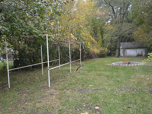 This all block bungalow is set on a large (near half-acre) private lot and is more spacious than it appears! 2 bedroom, 1 bath, large kitchen and dining room and full dry basement rec. area with pool table. Laundry chute from bathroom to basement laundry area. 2-car detached garage and large shed in back yard with attached dog kennel. Beautiful hardwood floors just refinished, new carpet and paint throughout, ceramic tile floor in kitchen. All appliances included. Large back yard with grape arbor and fire pit. New roof on house and garage in 2014. Brand new front porch stoop and walkway. (Home used to be a 3-bedroom house, and could easily be converted back.)
