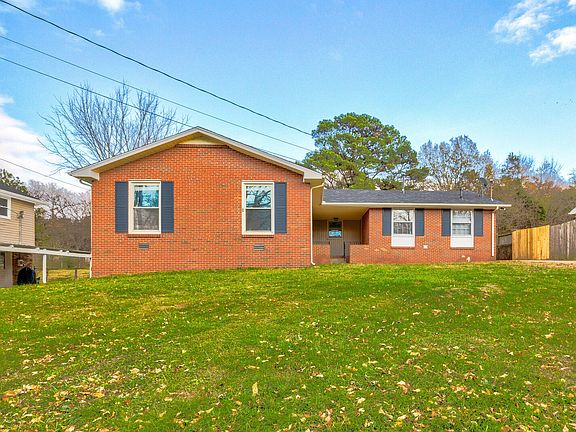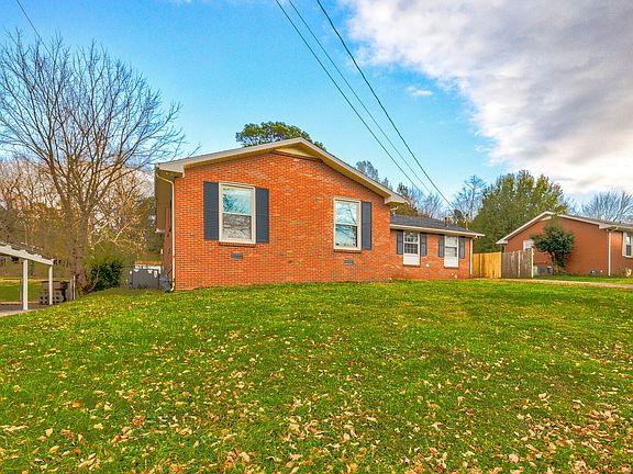 Charming home with 4 bedrooms and 2.5 bathrooms. This property is in a great location off I-24! A pair of brick planters welcome you to the front porch. Entry hall opens to living spaces with LVP, tile, and carpet flooring. The dining room and kitchen are connected by a retro serving window! The family room includes a brick accent wall and fireplace. Primary bedroom is en-suite with tile floors and tub/shower. The ROOF and HVAC were both recently replaced. This home is settled on .32 acres in a quiet neighborhood.