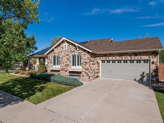 Wonderful newer upgraded Ranch on corner lot with huge deck overlooking private backyard. Wonderful, oversized main floor Primary Suite! Plantation shutters, unfinished basement for lots of storage or to make your own. Quiet location with easy access to Street of Southlands and a great commute to Denver International Airport! Central air! Note: An extra fee for Pool and Clubhouse access.